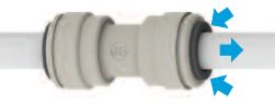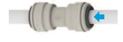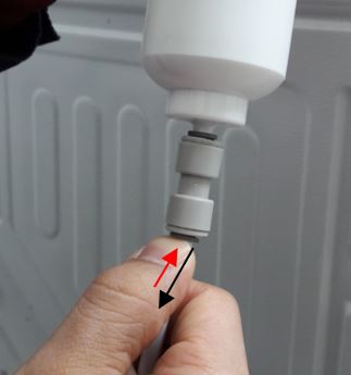 .... Desligue os tubos empurrando a anilha (geralmente cinza escuro / vermelho) da ligação enquanto puxa o tubo para fora, repita isso em ambas as extremidades do filtro de água ou válvula de retenção, se instalada. Pode descartar a válvula de retenção visto que o novo filtro virá com uma.
