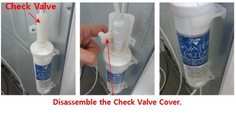 Você pode ou não ter uma válvula de retenção instalada em seu aparelho, é fácil ver se você tem ou não (veja as fotos) se você abrir a tampa com uma chave de fenda então ...